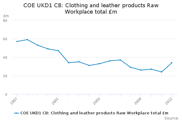 Download this time seriesCOE UKD1 CB: Clothing and leather products Raw Workplace total £m