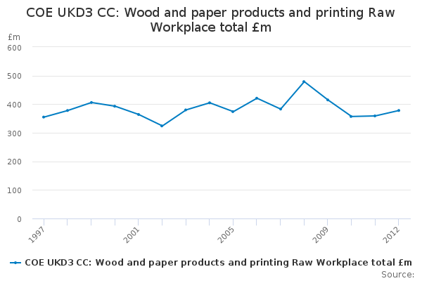 Download this time seriesCOE UKD3 CC: Wood and paper products and printing Raw Workplace total £m
