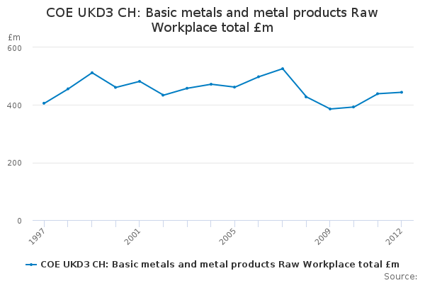 Download this time seriesCOE UKD3 CH: Basic metals and metal products Raw Workplace total £m