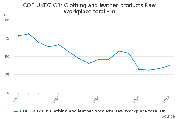 Download this time seriesCOE UKD7 CB: Clothing and leather products Raw Workplace total £m