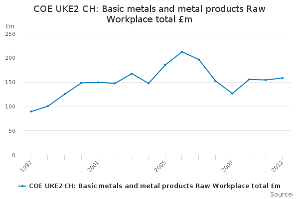 Download this time seriesCOE UKE2 CH: Basic metals and metal products Raw Workplace total £m