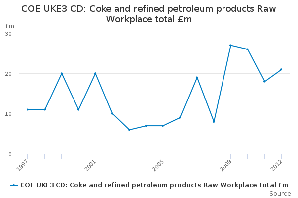 Download this time seriesCOE UKE3 CD: Coke and refined petroleum products Raw Workplace total £m