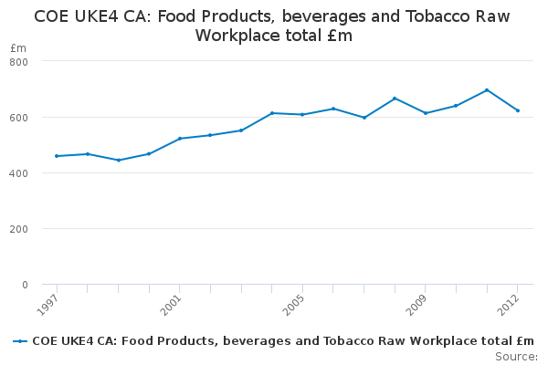 Download this time seriesCOE UKE4 CA: Food Products, beverages and Tobacco Raw Workplace total £m
