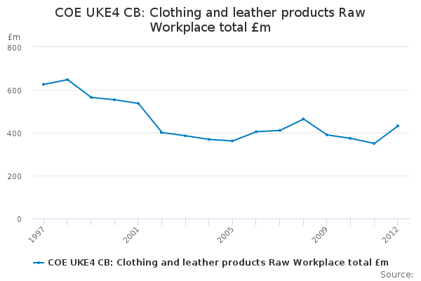 Download this time seriesCOE UKE4 CB: Clothing and leather products Raw Workplace total £m