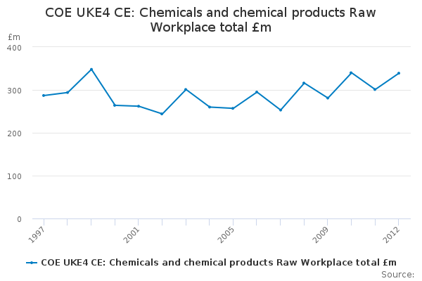 Download this time seriesCOE UKE4 CE: Chemicals and chemical products Raw Workplace total £m