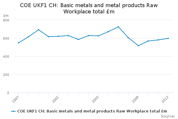 Download this time seriesCOE UKF1 CH: Basic metals and metal products Raw Workplace total £m