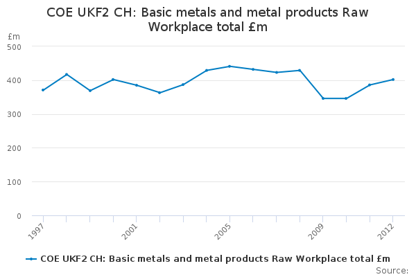 Download this time seriesCOE UKF2 CH: Basic metals and metal products Raw Workplace total £m