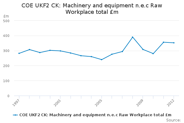 Download this time seriesCOE UKF2 CK: Machinery and equipment n.e.c Raw Workplace total £m
