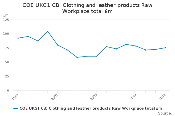 Download this time seriesCOE UKG1 CB: Clothing and leather products Raw Workplace total £m