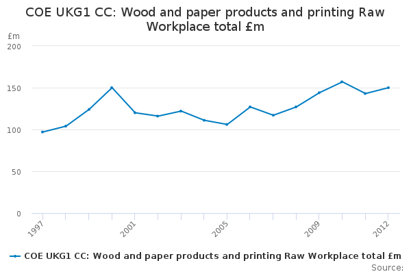 Download this time seriesCOE UKG1 CC: Wood and paper products and printing Raw Workplace total £m
