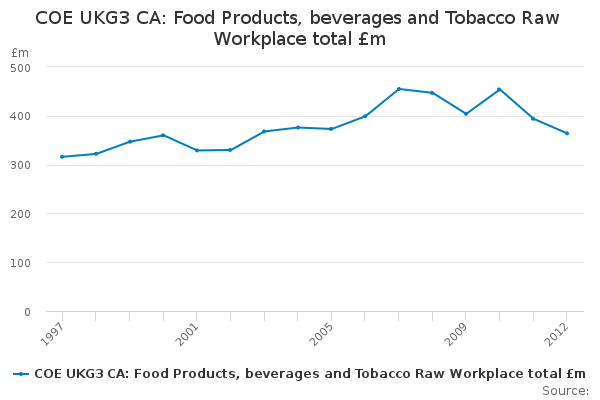 Download this time seriesCOE UKG3 CA: Food Products, beverages and Tobacco Raw Workplace total £m