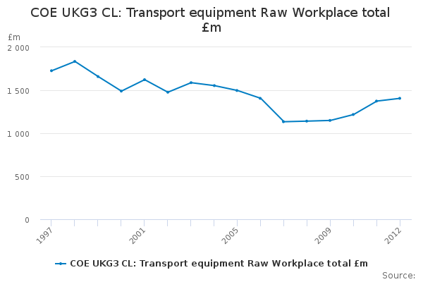 Download this time seriesCOE UKG3 CL: Transport equipment Raw Workplace total £m