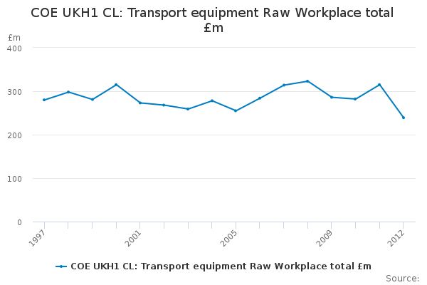 Download this time seriesCOE UKH1 CL: Transport equipment Raw Workplace total £m