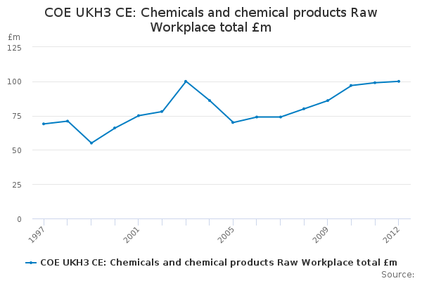 Download this time seriesCOE UKH3 CE: Chemicals and chemical products Raw Workplace total £m