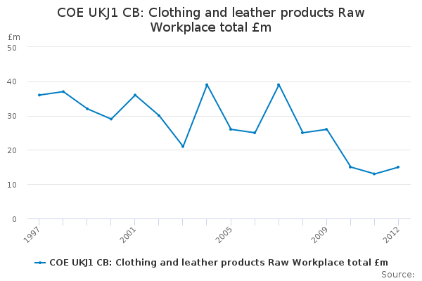 Download this time seriesCOE UKJ1 CB: Clothing and leather products Raw Workplace total £m
