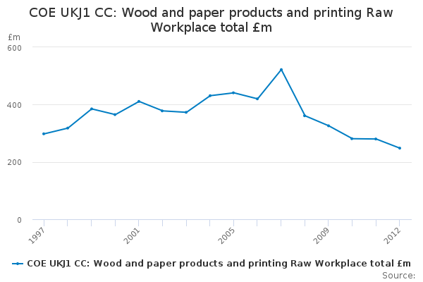 Download this time seriesCOE UKJ1 CC: Wood and paper products and printing Raw Workplace total £m