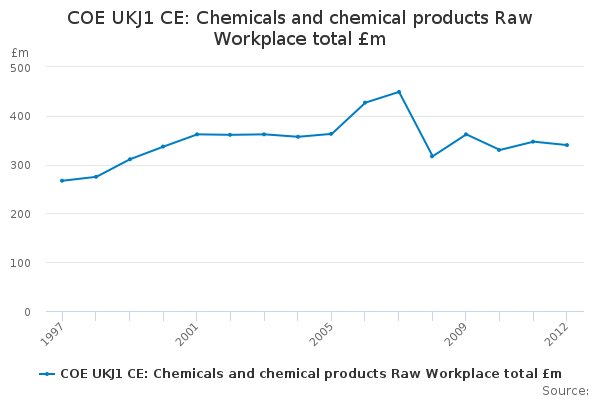 Download this time seriesCOE UKJ1 CE: Chemicals and chemical products Raw Workplace total £m