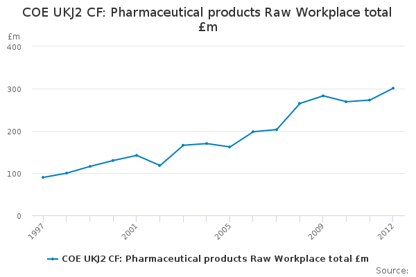 Download this time seriesCOE UKJ2 CF: Pharmaceutical products Raw Workplace total £m