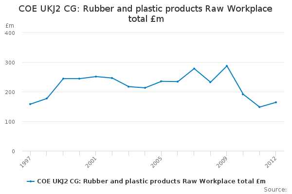 Download this time seriesCOE UKJ2 CG: Rubber and plastic products Raw Workplace total £m