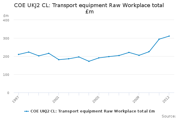 Download this time seriesCOE UKJ2 CL: Transport equipment Raw Workplace total £m