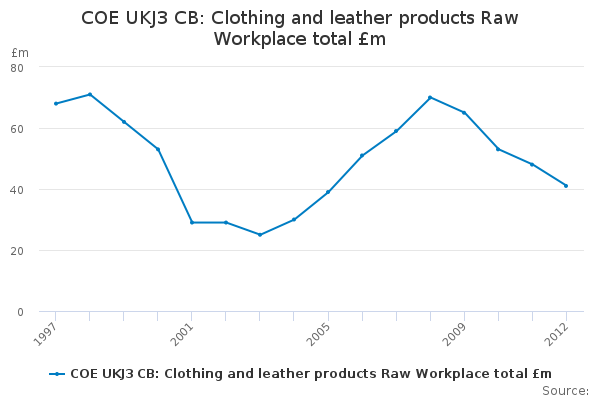 Download this time seriesCOE UKJ3 CB: Clothing and leather products Raw Workplace total £m
