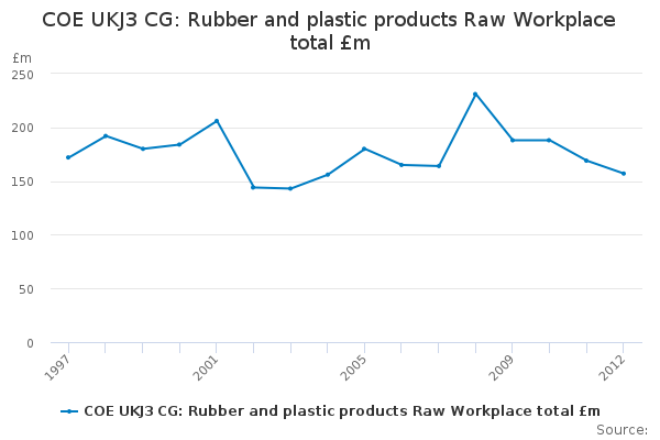 Download this time seriesCOE UKJ3 CG: Rubber and plastic products Raw Workplace total £m