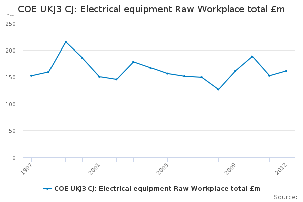 Download this time seriesCOE UKJ3 CJ: Electrical equipment Raw Workplace total £m