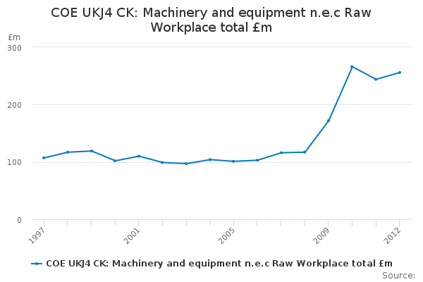Download this time seriesCOE UKJ4 CK: Machinery and equipment n.e.c Raw Workplace total £m