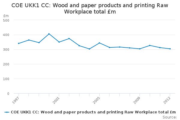 Download this time seriesCOE UKK1 CC: Wood and paper products and printing Raw Workplace total £m