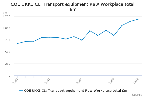 Download this time seriesCOE UKK1 CL: Transport equipment Raw Workplace total £m