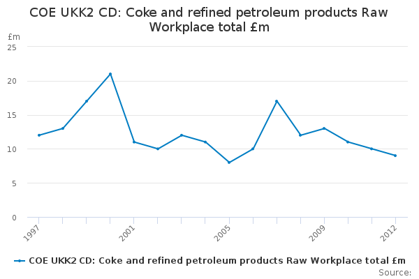 Download this time seriesCOE UKK2 CD: Coke and refined petroleum products Raw Workplace total £m