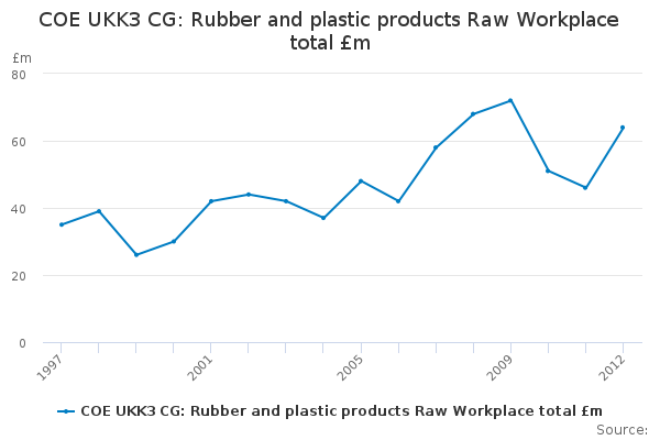 Download this time seriesCOE UKK3 CG: Rubber and plastic products Raw Workplace total £m