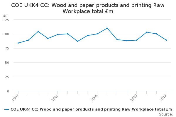 Download this time seriesCOE UKK4 CC: Wood and paper products and printing Raw Workplace total £m