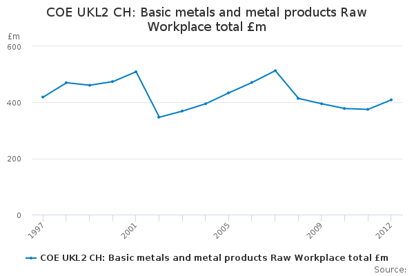 Download this time seriesCOE UKL2 CH: Basic metals and metal products Raw Workplace total £m