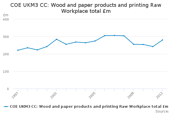 Download this time seriesCOE UKM3 CC: Wood and paper products and printing Raw Workplace total £m