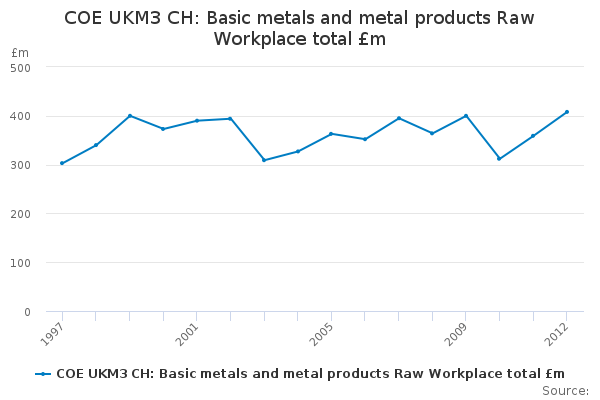 Download this time seriesCOE UKM3 CH: Basic metals and metal products Raw Workplace total £m