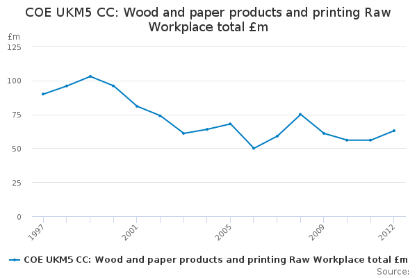 Download this time seriesCOE UKM5 CC: Wood and paper products and printing Raw Workplace total £m