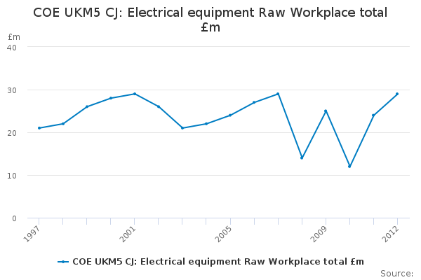 Download this time seriesCOE UKM5 CJ: Electrical equipment Raw Workplace total £m