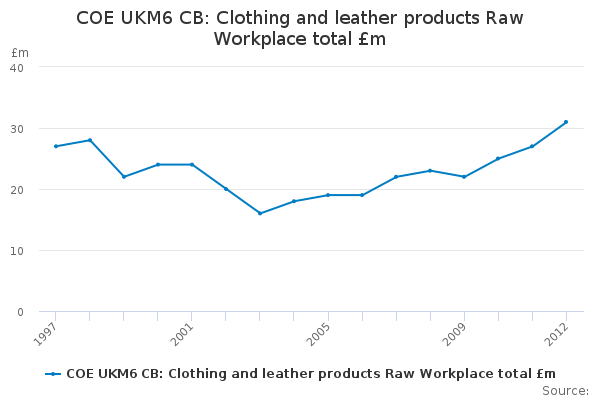 Download this time seriesCOE UKM6 CB: Clothing and leather products Raw Workplace total £m