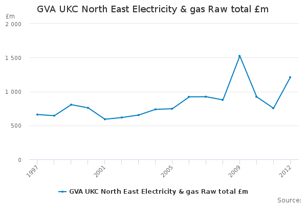 Download this time seriesGVA UKC North East Electricity & gas Raw total £m