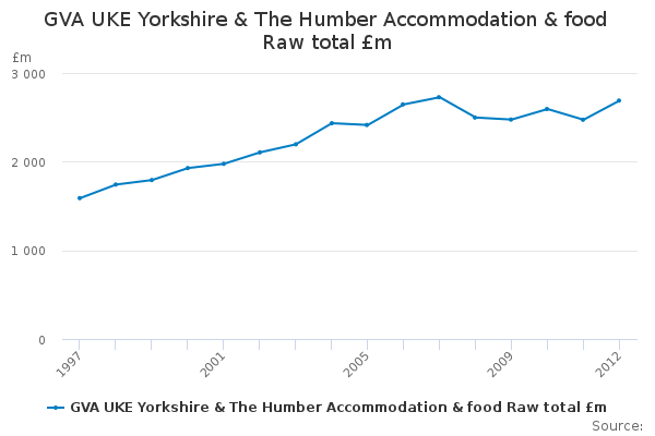 Download this time seriesGVA UKE Yorkshire & The Humber Accommodation & food Raw total £m