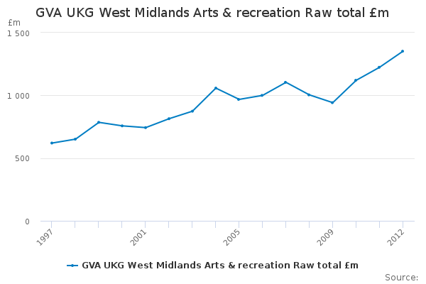 Download this time seriesGVA UKG West Midlands Arts & recreation Raw total £m