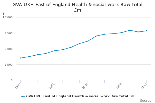 Download this time seriesGVA UKH East of England Health & social work Raw total £m