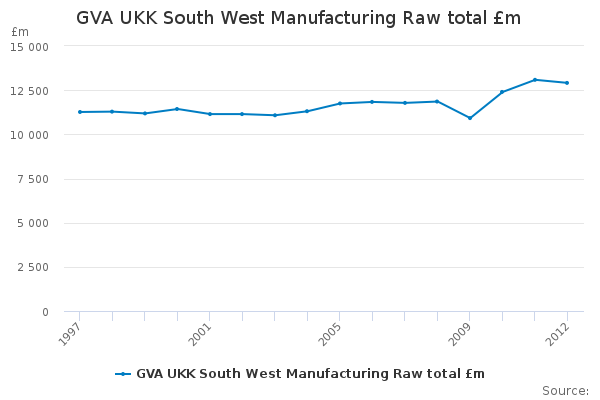 Download this time seriesGVA UKK South West Manufacturing Raw total £m