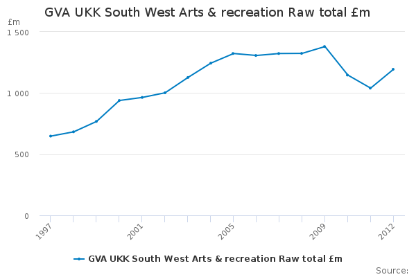 Download this time seriesGVA UKK South West Arts & recreation Raw total £m