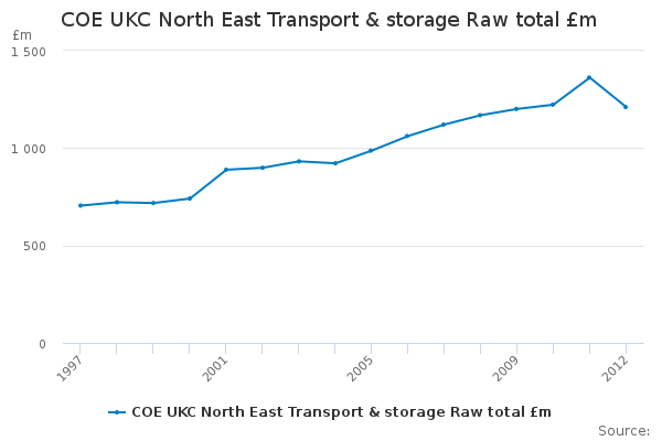 Download this time seriesCOE UKC North East Transport & storage Raw total £m