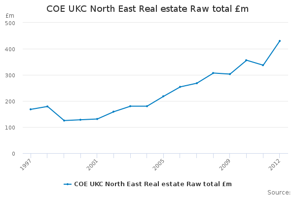 Download this time seriesCOE UKC North East Real estate Raw total £m