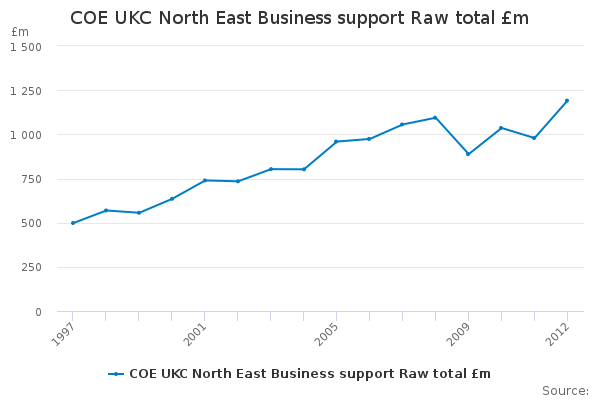 Download this time seriesCOE UKC North East Business support Raw total £m