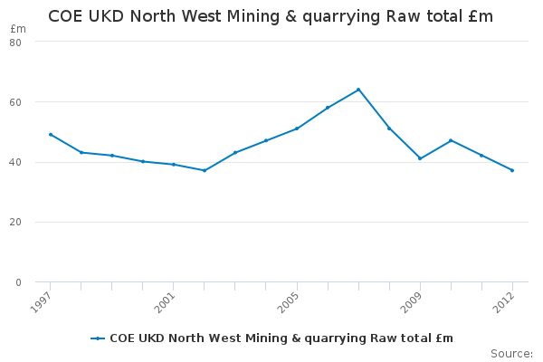 Download this time seriesCOE UKD North West Mining & quarrying Raw total £m