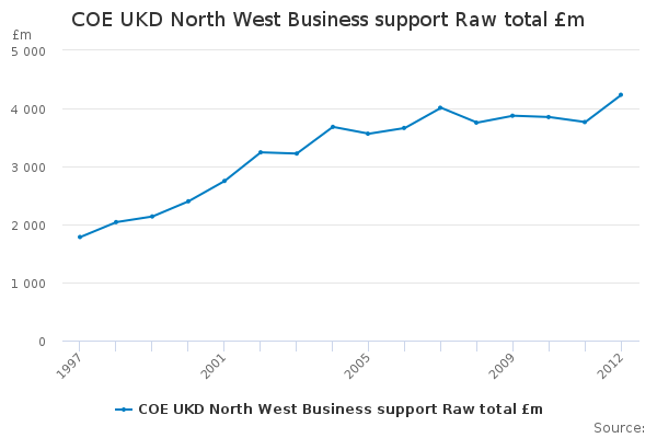 Download this time seriesCOE UKD North West Business support Raw total £m
